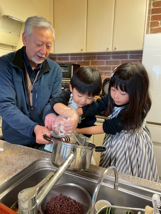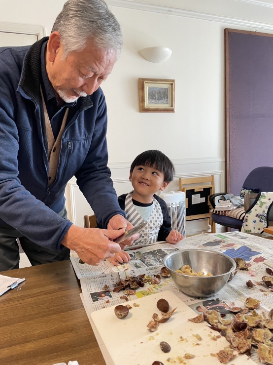 名古屋のじーじと岐阜の中津川で取れた栗を使って、栗入りあんこを作りました。