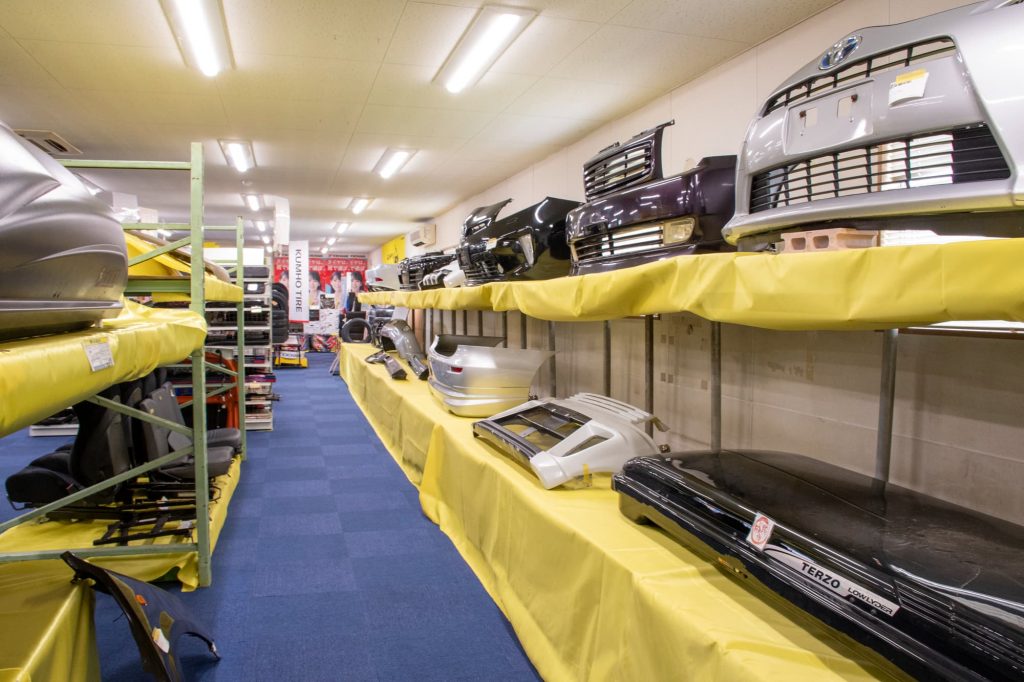お客様からお引き取りしたお車でまだまだ使える部品やタイヤがあった場合に、スタッフが丁寧に部品を取り外し、検品をして磨きショップで販売することで、同じ部品を必要としているまた別のお客様の元へ渡っていきます。