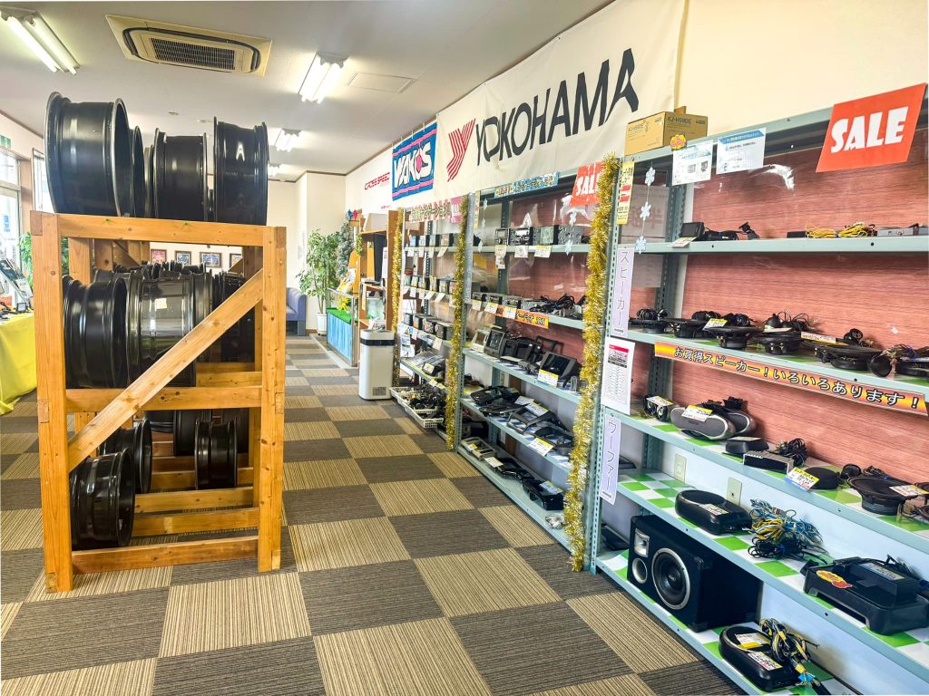 センターでは自動車を解体してリサイクルするお仕事の他に、タイヤや自動車のパーツを取り扱うタイヤショップも営業しています。